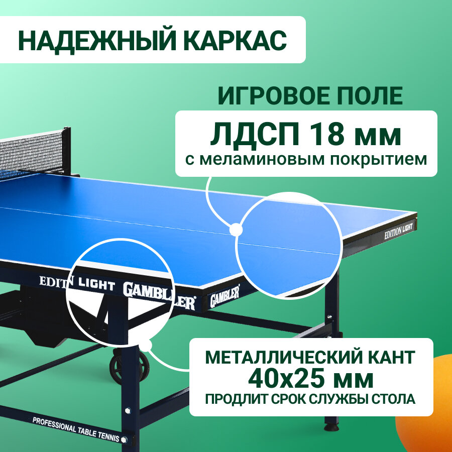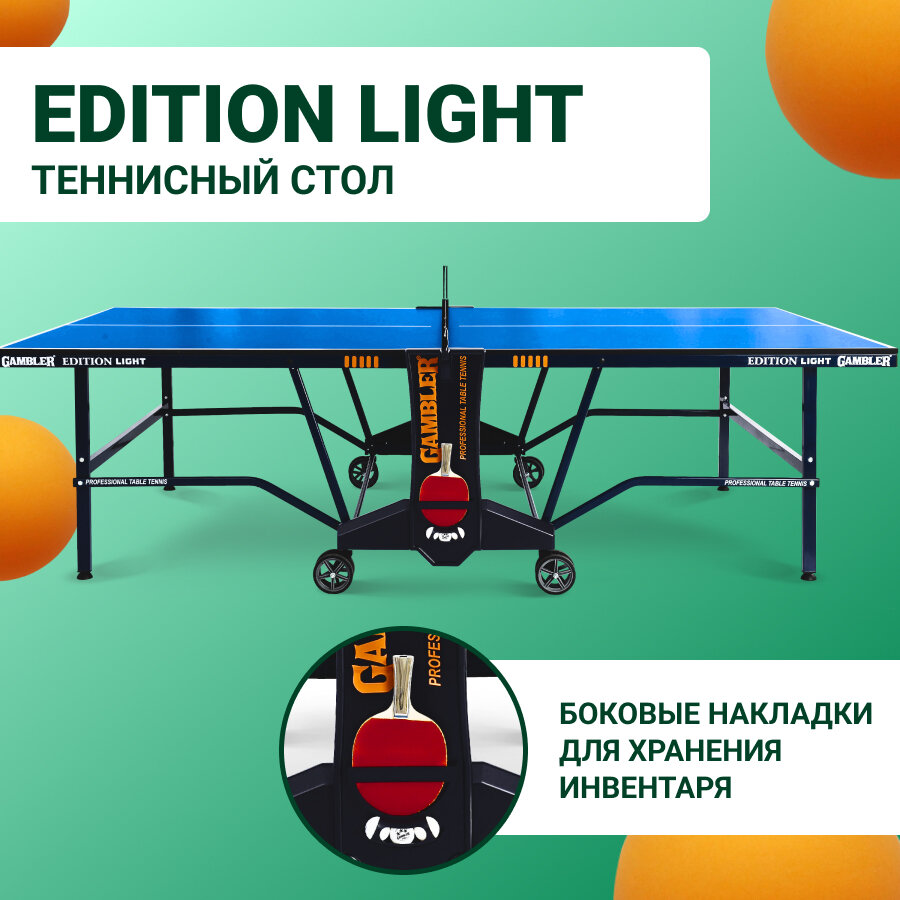 Стол теннисный GAMBLER Edition light Indoor профессиональный, для помещений, с встроенной сеткой интересное: