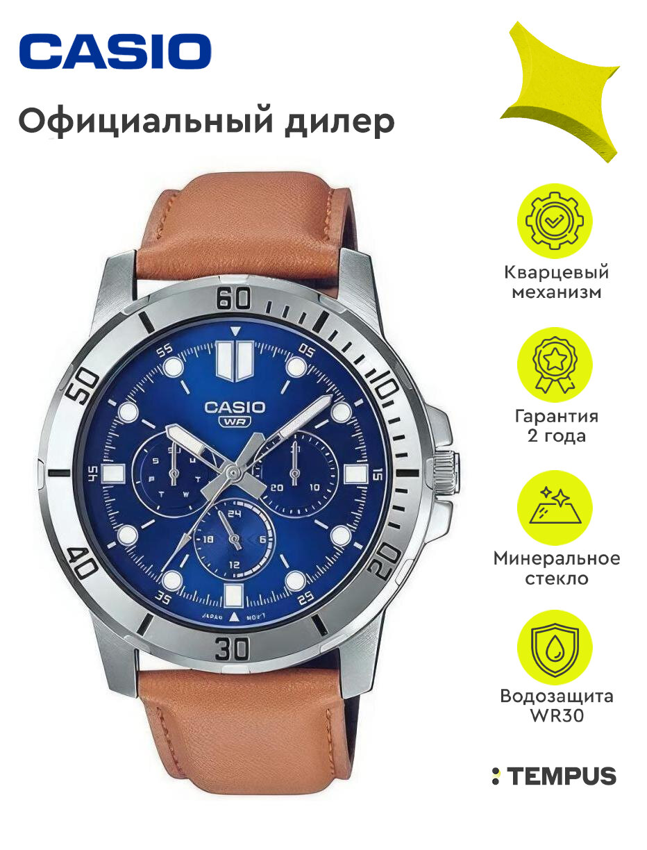 Наручные часы CASIO MTP-VD300L-2E кварцевые, водонепроницаемые, подсветка стрелок