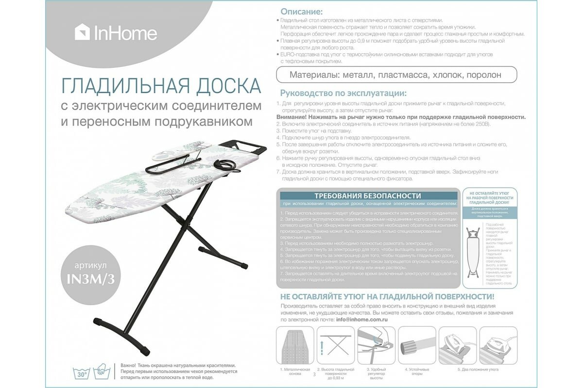 Купить Гладильная доска металлическая с розеткой, полкой и подрукавником InHome IN3M/3