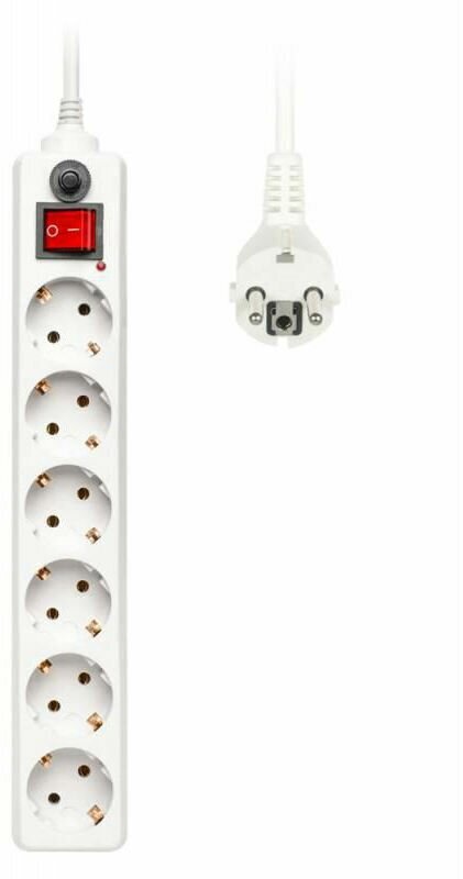 Сетевой фильтр BURO 600SH-1.8-W белый, 6гн, 1,8м, выключатель
