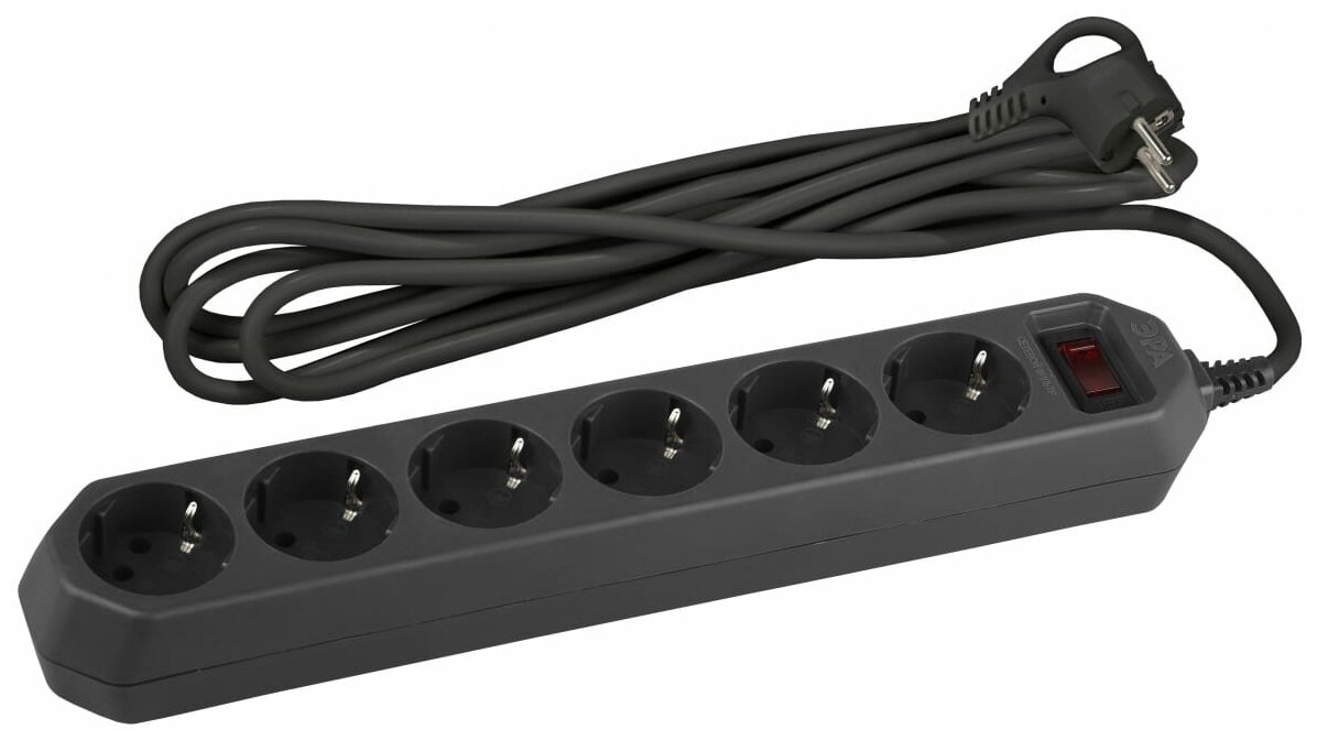 Сетевой фильтр ЭРА USF-6es-5m-B с базовой защитой с заземлением с выключателем 6 розеток 5м 10А черный