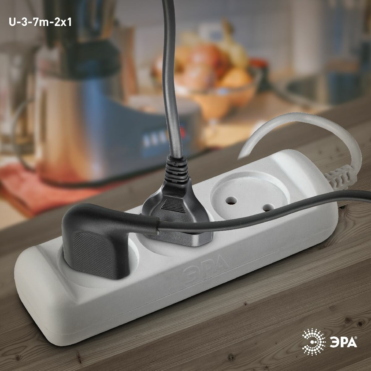 Удлинитель электрический ЭРА U-3-7m-2x1 без заземления 3 розетки 7м ПВС 2x1мм2 10А