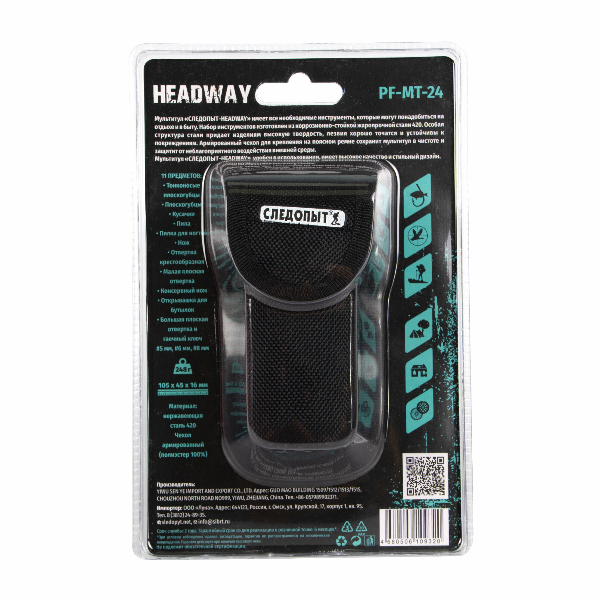 Купить Мультитул (плоскогубцы) Следопыт -HEADWAY, 105х45х16 мм, 11 предметов, в чехле, на блистере