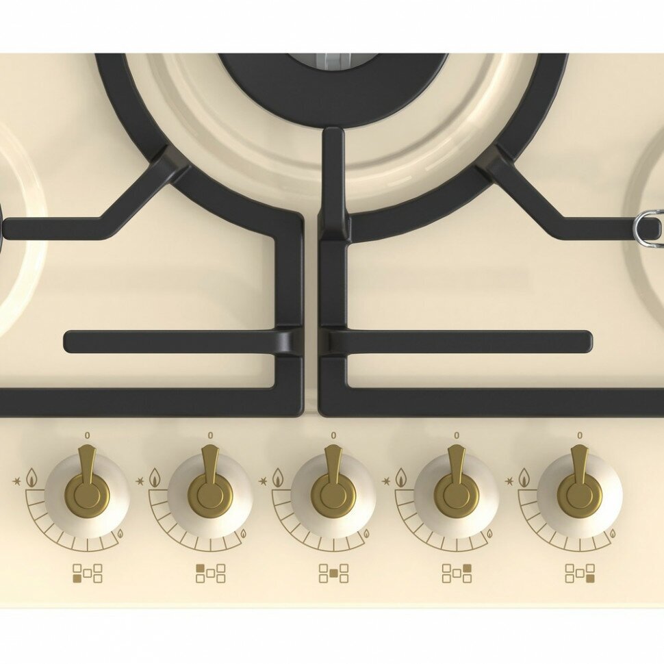 Варочная поверхность Gorenje GW 7C51CLI газовая, слоновая кость, 5 конфорок, конфорка WOK, газ-контроль, электроподжиг,