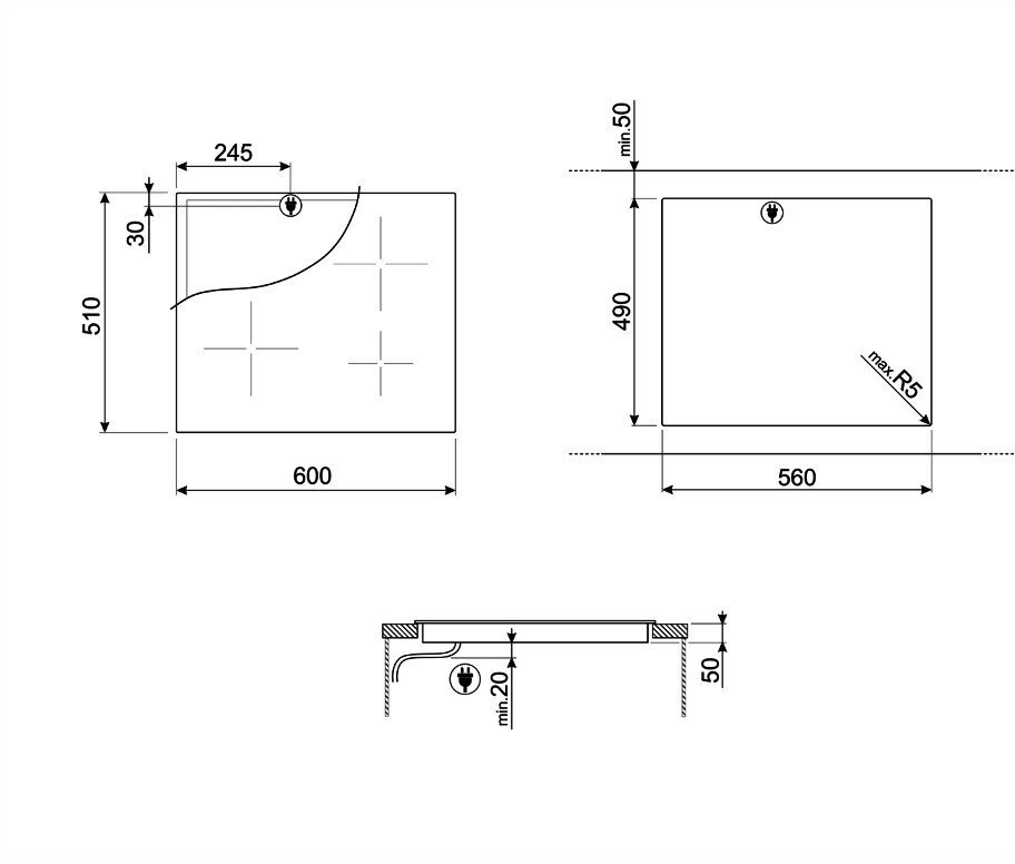 Smeg Встраиваемая варочная панель SMEG/ Стеклокерамическая панель, 60 см, прямой край,черный цвет