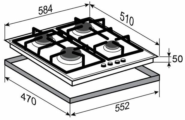 Купить Варочная панель газовая встраиваемая Зигмунд & Штейн MN 175.61 W закаленное стекло белый 50х584х510мм 4 конфорки 2 решетки / газ-контроль /