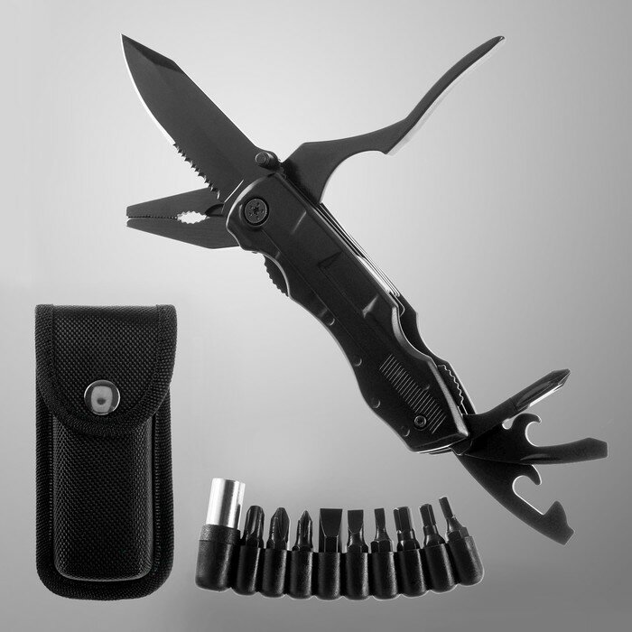 Нож швейцарский 12в1, 17см, клинок 73мм/1,5мм, черный