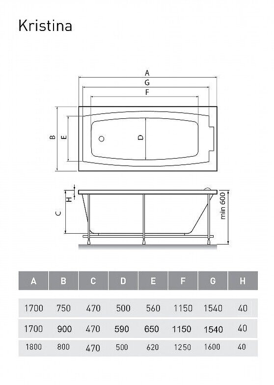 Ванна акриловая Relisan KRISTINA Гл000023015, 180x80