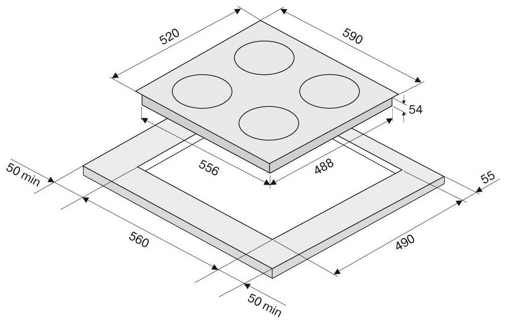 | Размеры конфорок | Диаметры и мощность конфорок: Дальняя левая: 160 мм * 1,3/1,5 кВт; Дальняя правая: 180 мм * 1,5/2 кВт; Ближняя левая: 180 мм * 2/2,6 кВт; Ближняя правая: 160 мм * 1,5/2 кВт. Для каждой зоны нагрева предусмотрена функция Booster |