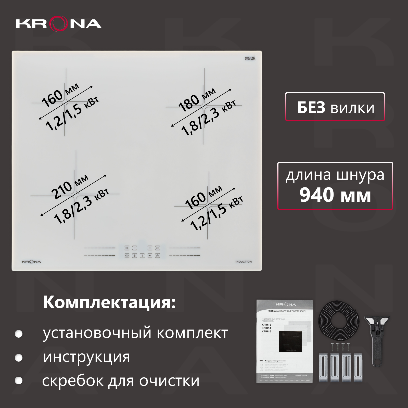 СохранитьИндукционная варочная панель Krona FARBE 60 WH интересное: