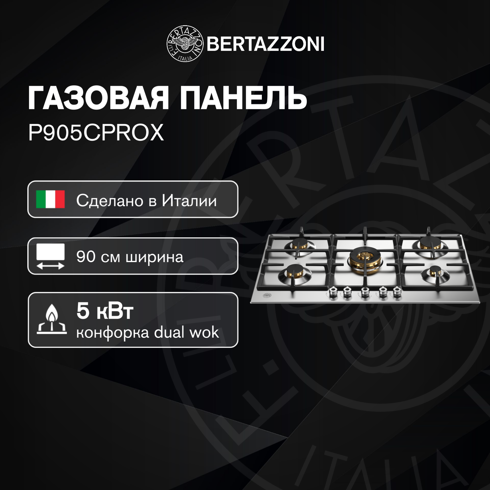 Варочная панель Bertazzoni P905CPROX газовая с центральной WOK-конфоркой, нержавеющая сталь
