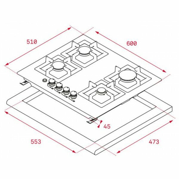 Варочная панель газовая HCG-423 Ginzzu, стальная поверхность