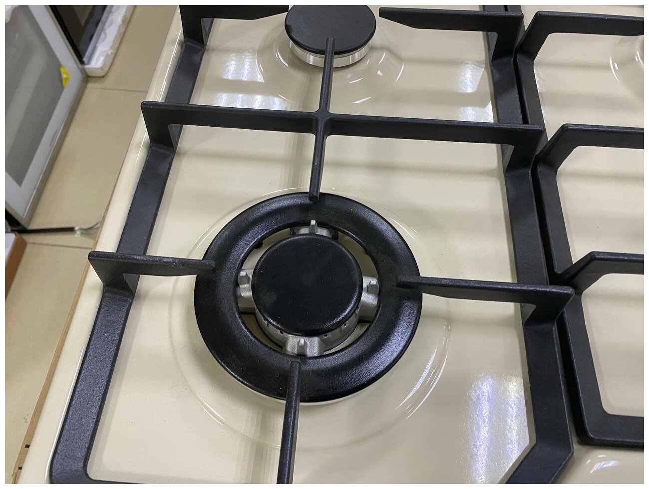 Варочная панель Korting HG 630 CTSB, бежевая, эмалированная сталь, газ-контроль, электроподжиг, чугунные держатели для посуды, WOK-конфорка, безопасное управление, ретро дизайн