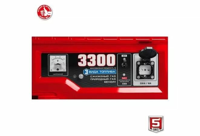 Зубр Газовый генератор (сжиженный газ / природный газ / бензин) ЗУБР 3300 Вт СГ-3300