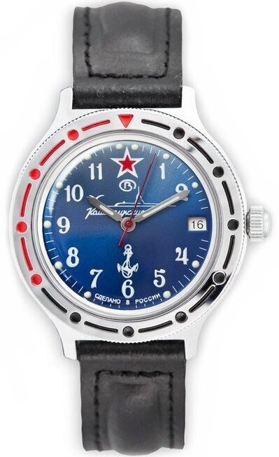 Мужские наручные часы Восток Командирские 921289-classic, натуральная кожа, черный