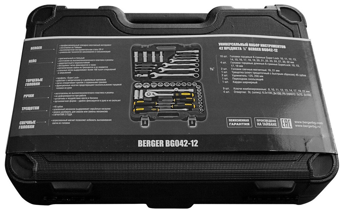 Универсальный набор инструментов BERGER 42 предмета ½” «ремшайд» BG042-12