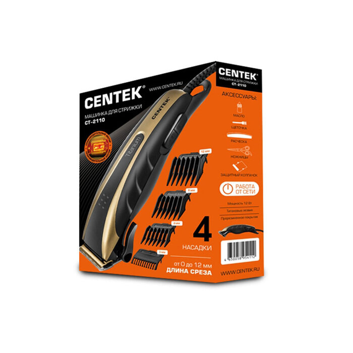 Купить Машинка для стрижки Centek CT-2110, 12 Вт, 4 насадки, черная 2602029