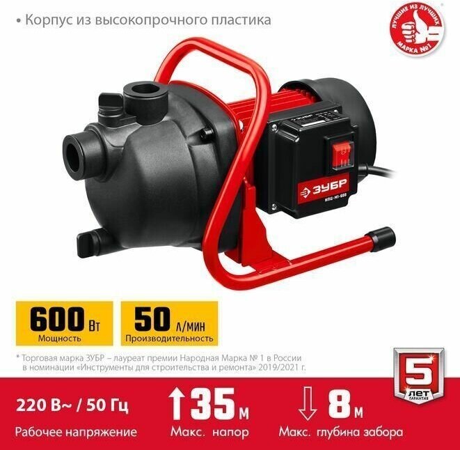 Поверхностный насос ЗУБР НС-М1-600 600Вт, 50 л/мин, напор 35м интересное:
