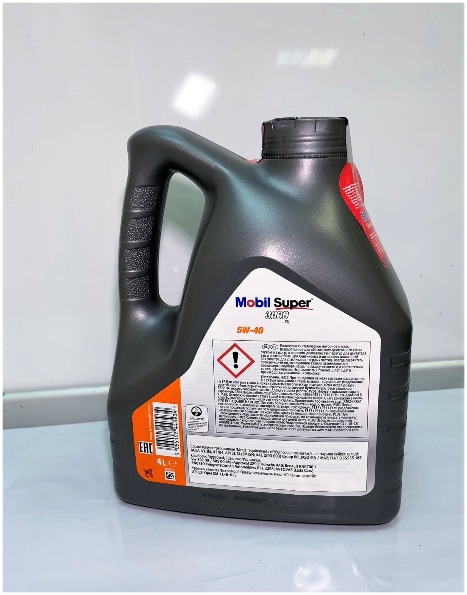 MOBIL 150546 Масло Mobil 5W40 Super 3000 X1 API SN/SM ACEA A3/B3 A3/B4 4л син 152566/150013/150546