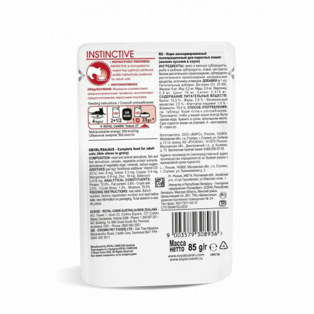 Корм влажный для кошек ROYAL CANIN Instinctive 85г соус пауч, 12 шт интересное: