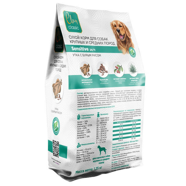 Купить CLAN CLASSIC Sensitive-24/11 утка с бур.рисом 1,25кг для собак крупных и средних пород