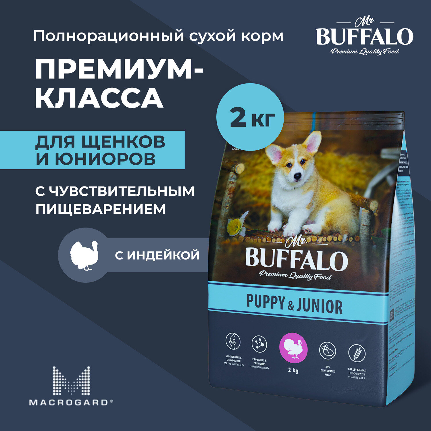Mr.Buffalo Puppy & Junior полнорационный сухой корм для щенков и юниоров всех пород с индейкой - 2 кг