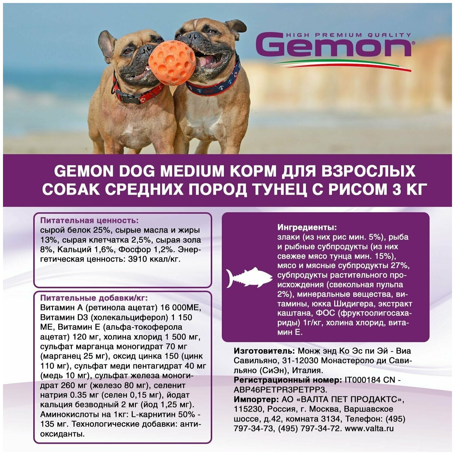 | Отзыв: | Встал вопрос о выборе корма. Много читали/смотрели и остановились на Gemon. Амстаф есть с удовольствием, аллергии не обнаружено, усвояемость хорошая. Нет сильного запаха, как у некоторых других кормов.
