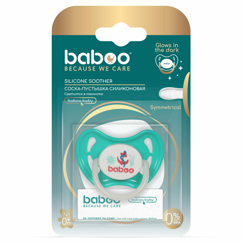 BABOO Соска-пустышка силиконовая симметричная Marine ночная 0 мес+