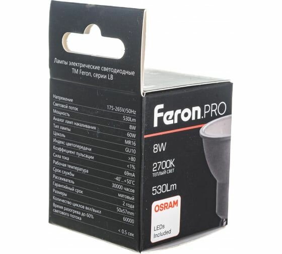 СохранитьСветодиодная лампа FERON PRO LB-1608 GU10 8W 2700K OSRAM LED 38092 интересное: