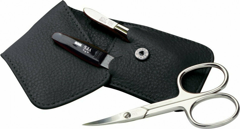 Yes 9018 Маникюрный набор yes, 3 пр. футляр: натуральная кожа, цвет черный
