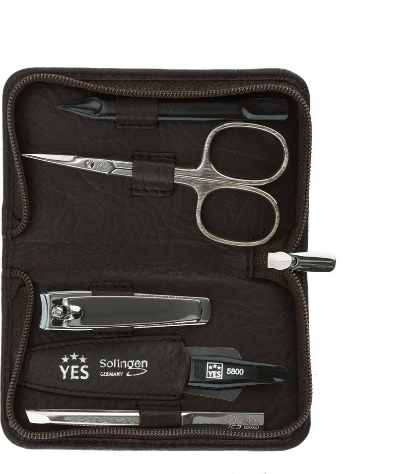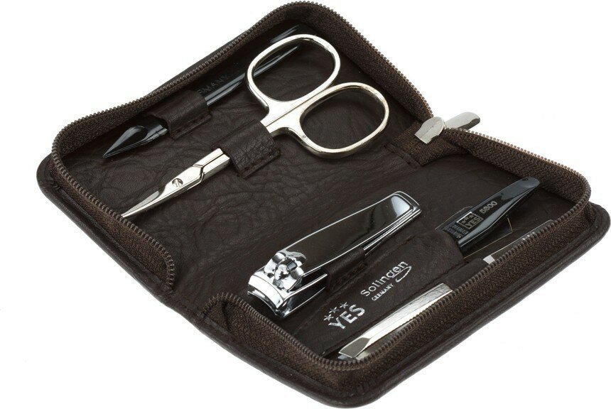 Yes 9012 Маникюрный набор yes, 5 пр. футляр: натуральная кожа, цвет коричневый