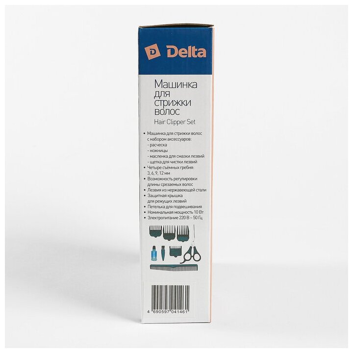 Машинка для стрижки DELTA DL-4012, 10 Вт, 4 насадки, серебряная