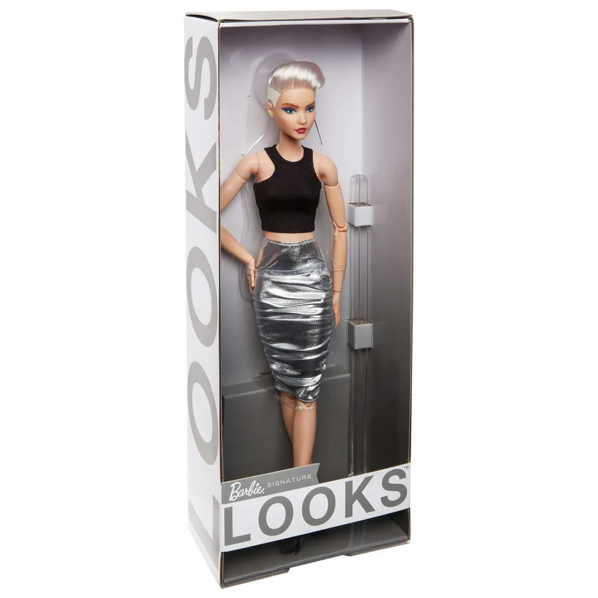 Купить Кукла Barbie из серии Looks Блондинка с короткой стрижкой, HCB78 серебристый/черный