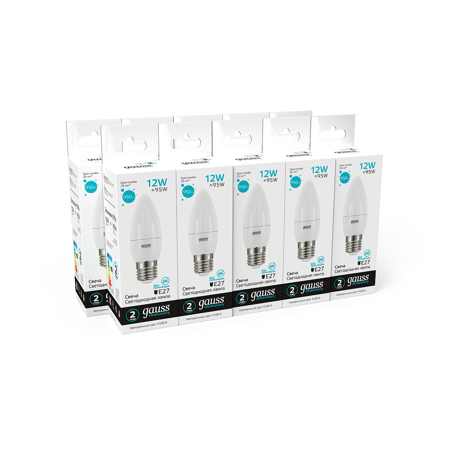 Светодиодная лампа Gauss Elementary 12W эквивалент 95W 4100K 950Лм E27 в форме свечи (комплект из 5 шт)