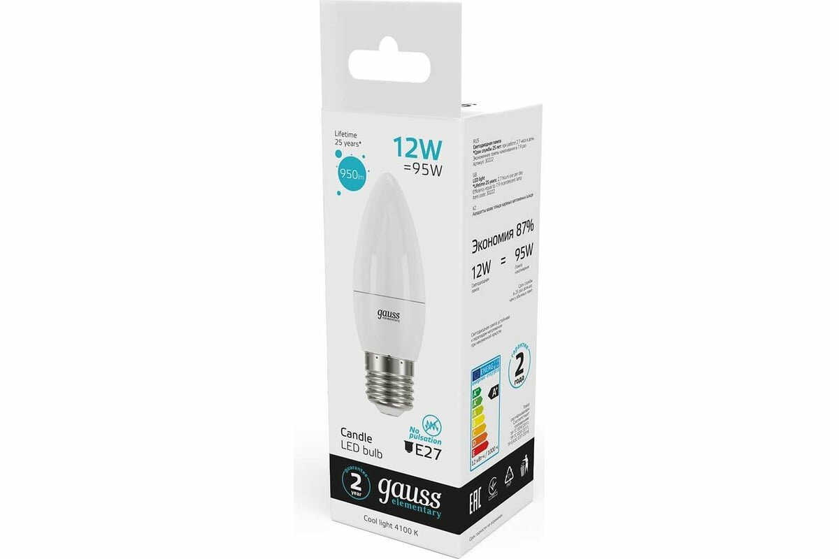 СохранитьGauss Лампа Elementary Свеча 12W 950lm 4100K E27 LED интересное: