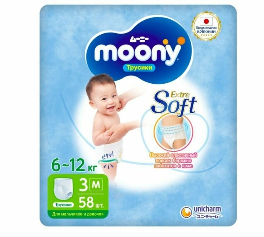 Купить MOONY Трусики 6-11/6-12кг М 58шт универсальные