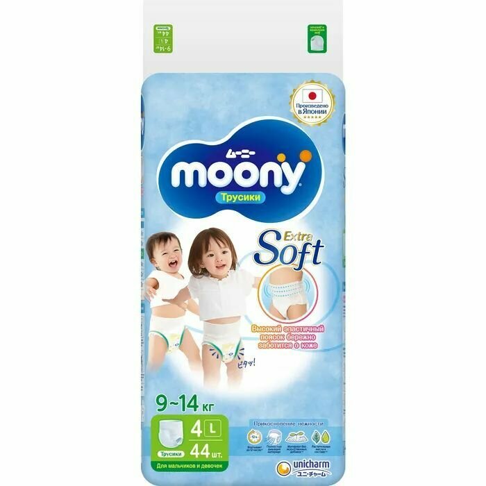 Подгузники трусики детские Moony Extra Soft универсальные 4 L 9-14 кг, 44 шт