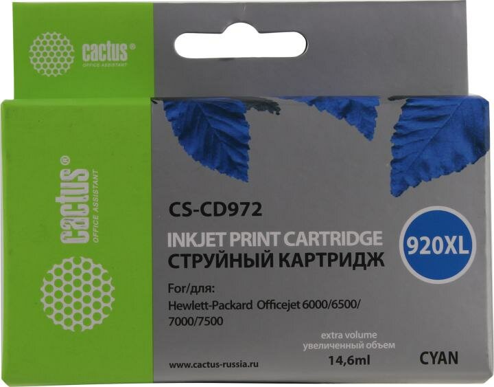 Картридж Cactus CS-CD972, №920XL, синий / CS-CD972