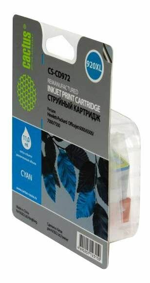 Картридж Cactus CS-CD972 совместимый струйный картридж (HP 920 XL - CD972AE) 11 мл, голубой