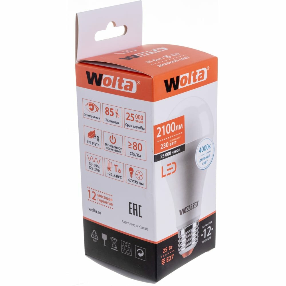 Светодиодная лампа WOLTA 25Вт, 2100лм, 4000К, Е27