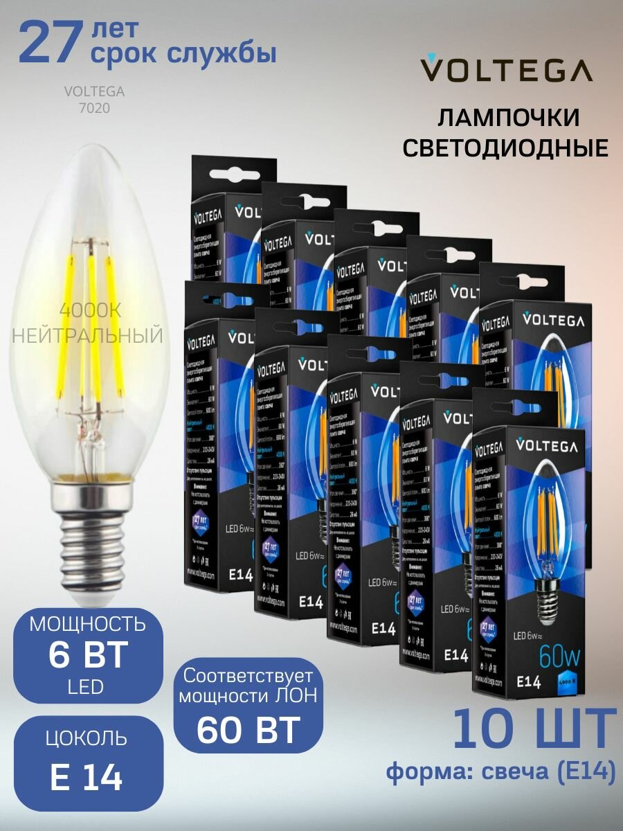 Лампа светодиодная Voltega E14 6W 4000К свеча прозрачная VG10-C1E14cold6W-F 7020