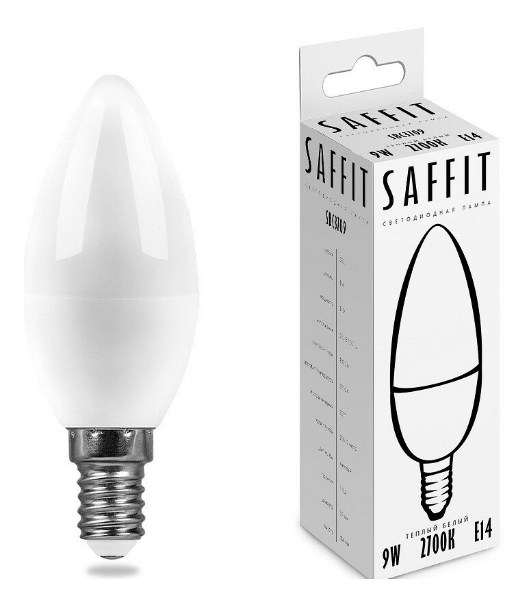 Лампа светодиодная SAFFIT SBC3709 Свеча E14 9W 230V 2700K 55078 fr_55078
