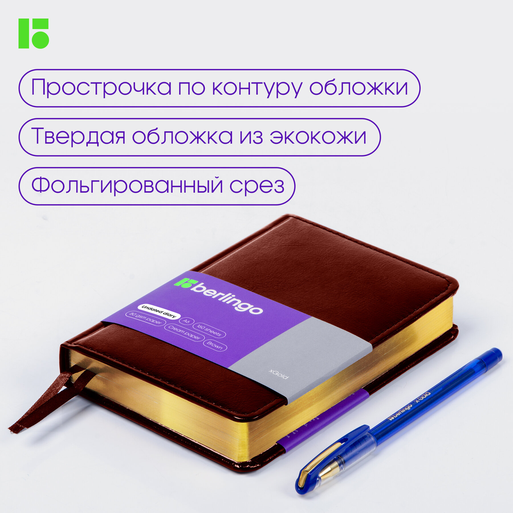 Купить Ежедневник недатированный Berlingo A6, 160 листов, кожзам, "xGold", золотой срез, коричневый (UD0_81603)
