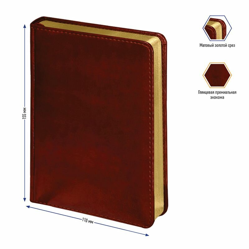 Berlingo xGold недатированный, искусственная кожа, А6+, 160 листов, бордовый, цвет бумаги тонированный