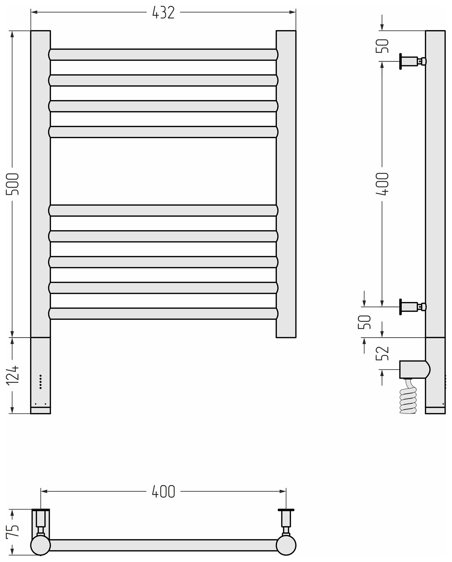 Электрический полотенцесушитель Сунержа Богема 3.0 прямая 500x400 лтэн без пoкрытия