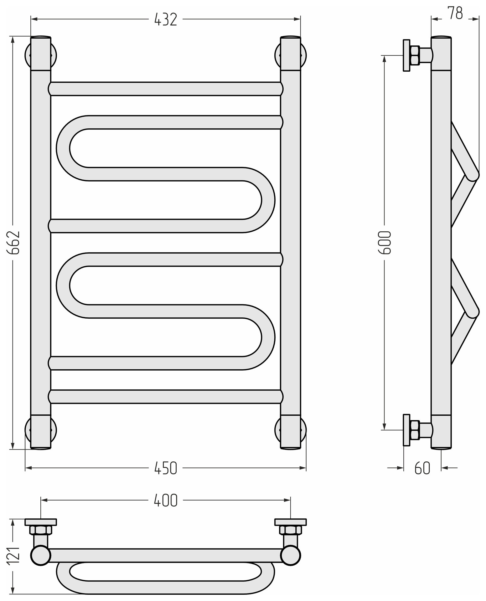 Полотенцесушитель водяной Сунержа Ш-образный 600х600 Без покрытия 00-0014-6060