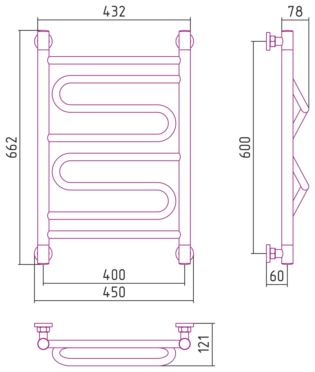 Полотенцесушитель Электрический Тругор Пэк сп 5 П 60х50 черный ВГП