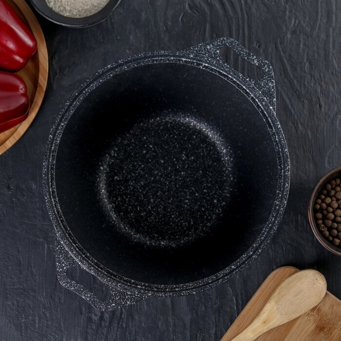 Казан с крышкой-сковородой, 3 л, антипригарное покрытие, тёмный мрамор KUKMARA 4278867 .
