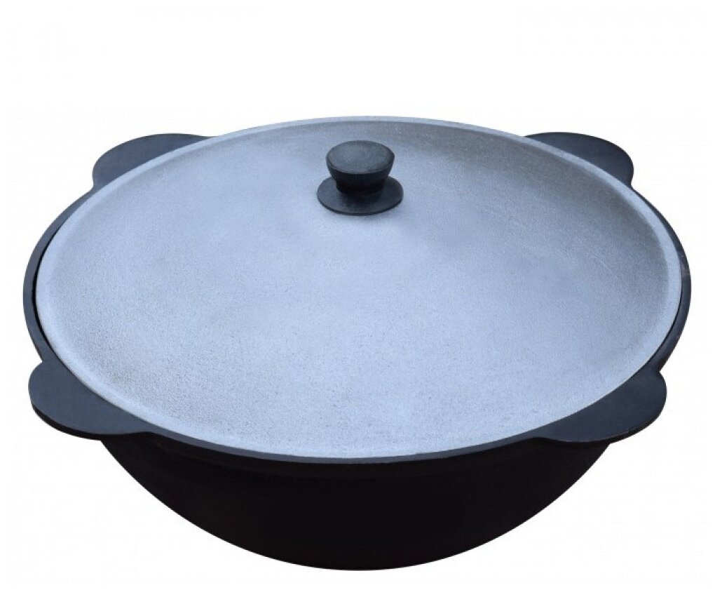 Казан узбекский, чугунный, 8 литров (плоское дно), с алюминиевой крышкой
