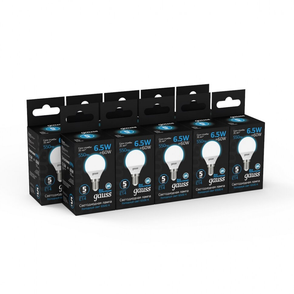 Упаковка ламп 10 штук Gauss Шар 6.5W 550lm 6500K E14 LED 1/10/100